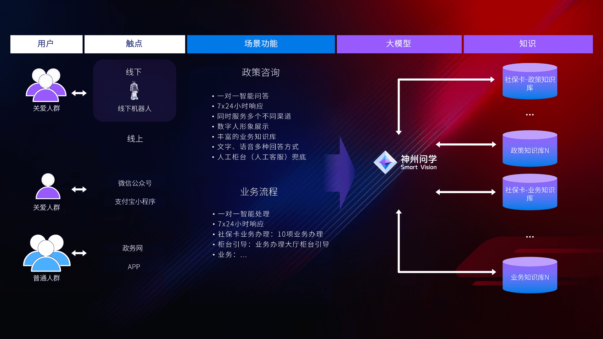 • 线上线下全覆盖:线上提供微信公众号、、支付宝小程序、、、政务网、、app多种渠道,,,,与线下机器人形成完整服务体系。。。